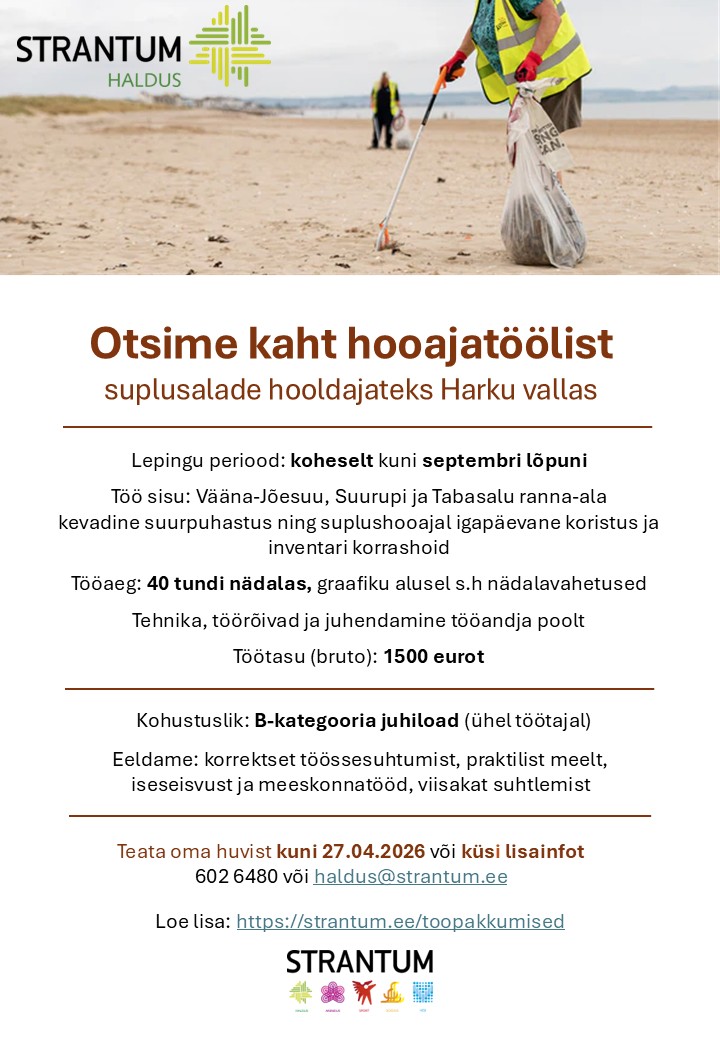 20.04. (01.04.) 2026Töö sisu täpsemat kirjeldust vaata: https://strantum.ee/toopakkumised